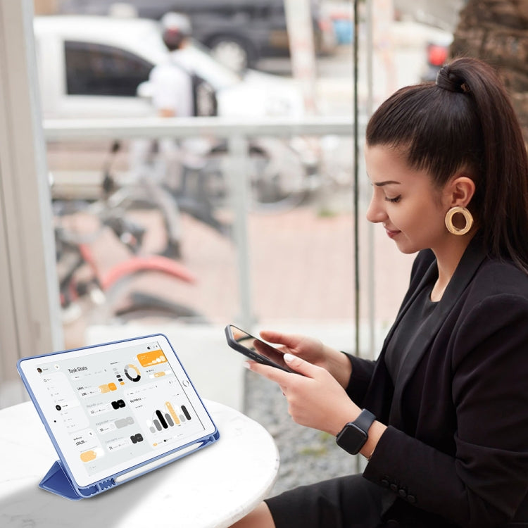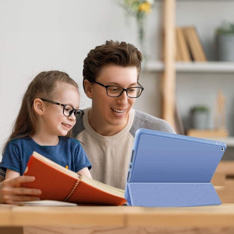 For iPad 10.2 2021 / 2020 / 2019 3-fold TPU Smart Leather Tablet Case with Pen Slot(Ice Blue)