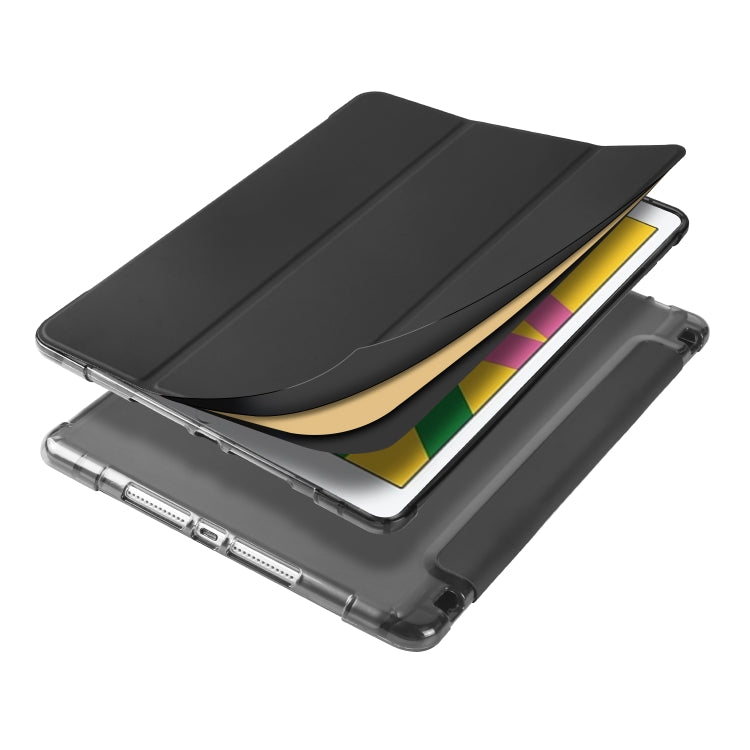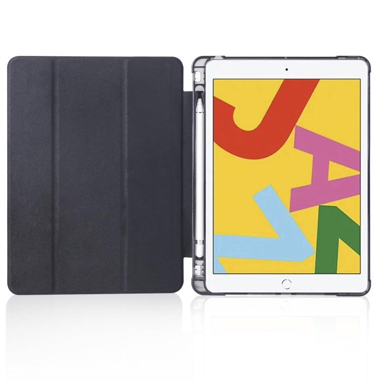 For iPad 10.2 2021 / 2020 / 2019 3-folding Horizontal Flip PU Leather + Shockproof TPU Case with Holder & Pen Slot(Black)