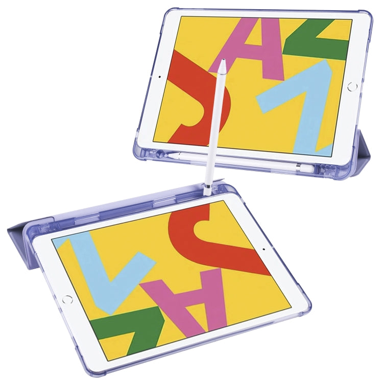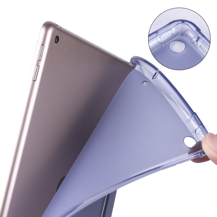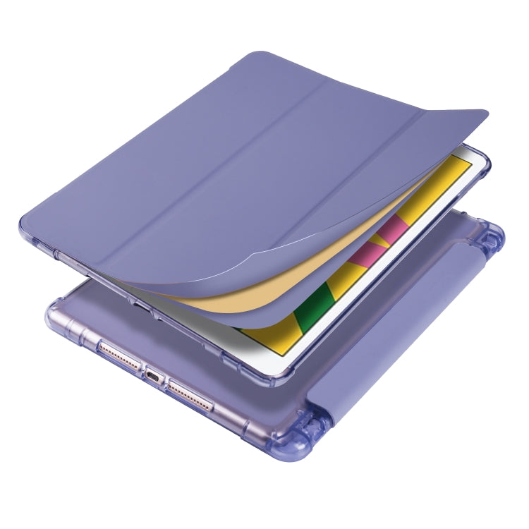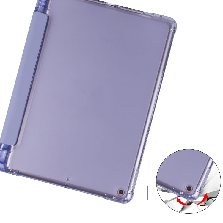 For iPad 10.2 2021 / 2020 / 2019 3-folding Horizontal Flip PU Leather + Shockproof TPU Case with Holder & Pen Slot(Lavender Purple)