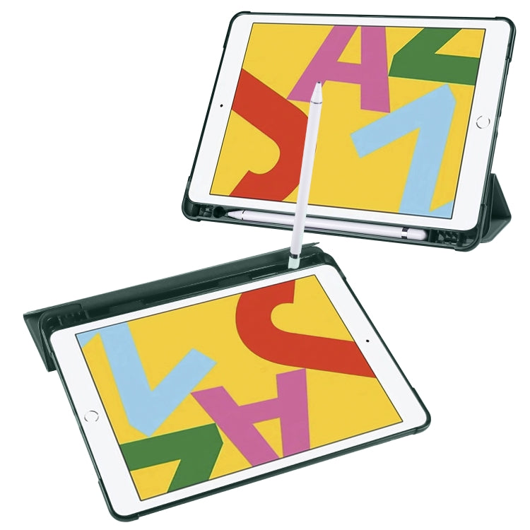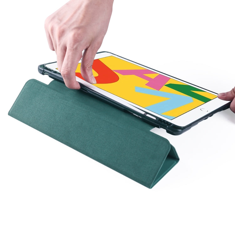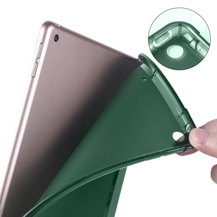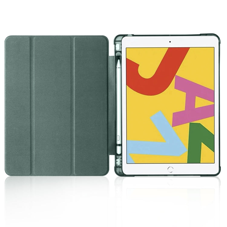 For iPad 10.2 2021 / 2020 / 2019 3-folding Horizontal Flip PU Leather + Shockproof TPU Case with Holder & Pen Slot(Pine Green)