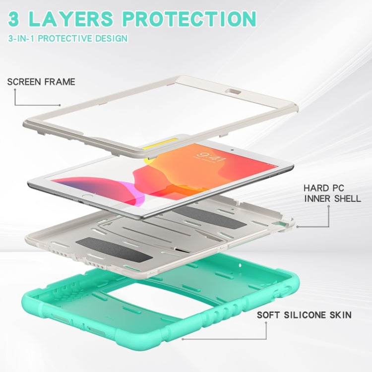 For iPad 10.2 2021 / 2020 / 2019 3-Layer Protection Screen Frame + PC + Silicone Shockproof Combination Case with Holder(Mint Green)