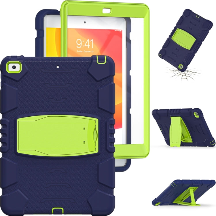 For iPad 10.2 2021 / 2020 / 2019 3-Layer Protection Screen Frame + PC + Silicone Shockproof Combination Case with Holder(NavyBlue+Lime)