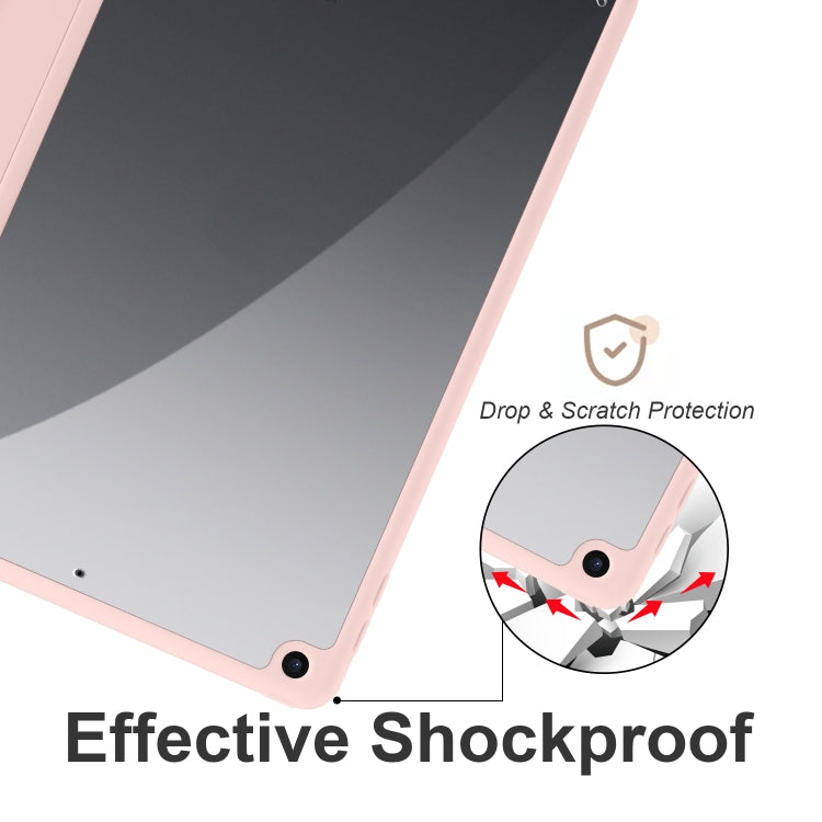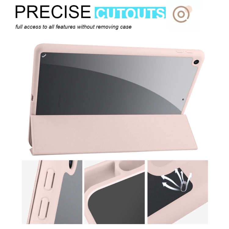 For iPad 10.2 2021/2020/2019 Acrylic 3-folding Smart Leather Tablet Case(Pink)