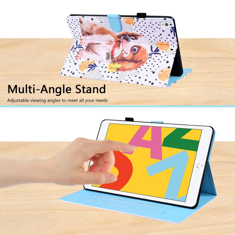 For iPad 10.2 2021 / 2020 / 2019 Animal Pattern Horizontal Flip Leather Case with Holder & Card Slots & Photo Frame & Sleep / Wake-up Function(Little Flower dog)