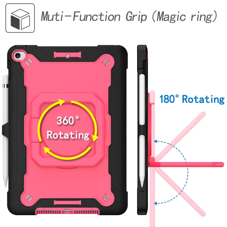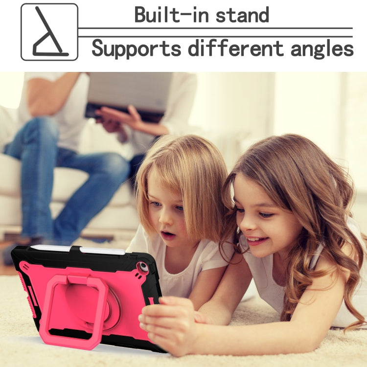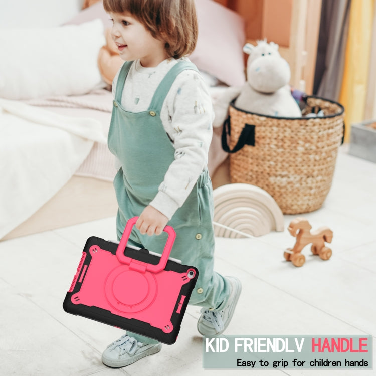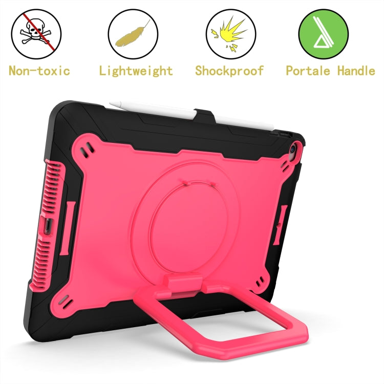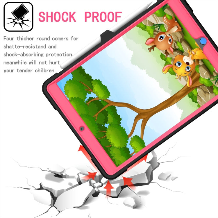For iPad 10.2 2021 / 2020 / 2019 Contrast Color Shockproof Robot Silicone + PC Case with Wristband Holder(Black + Rose Red)