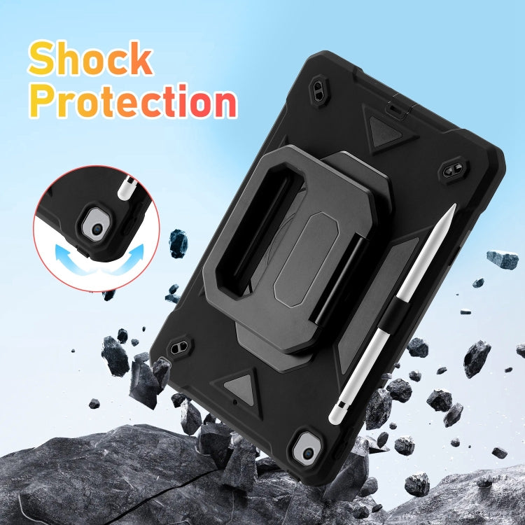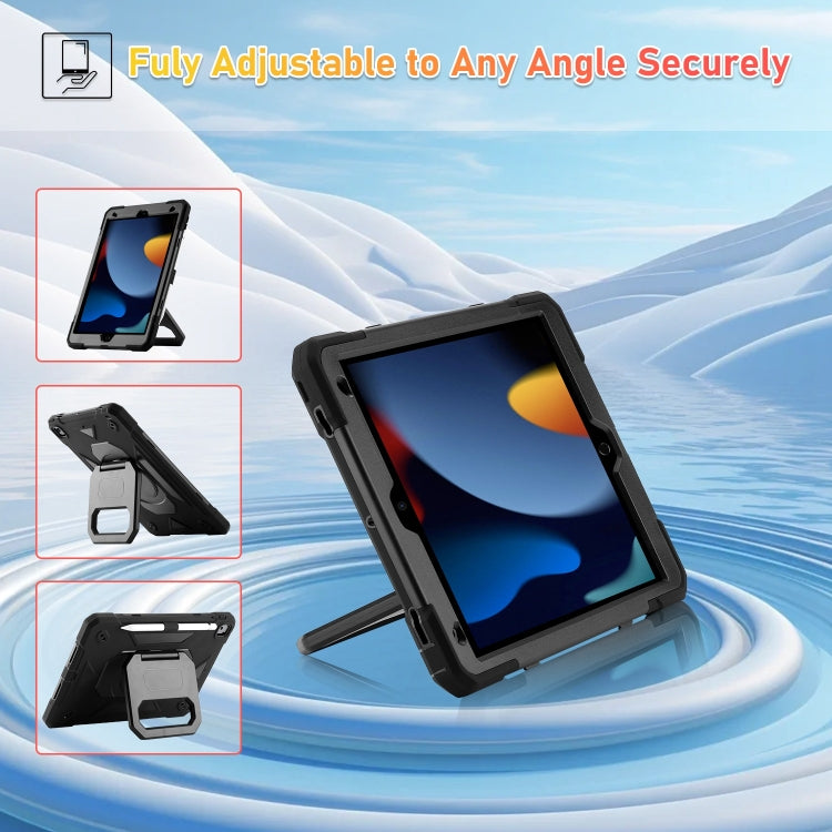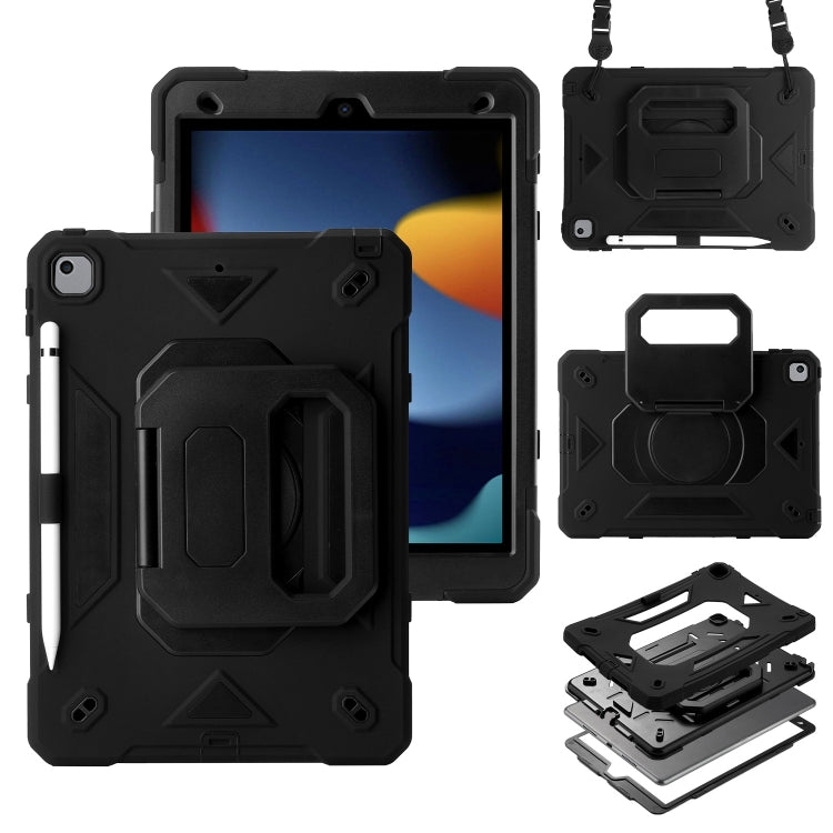 For iPad 10.2 2021 / 2020 / 2019 Legend Grip Holder Silicone Hybrid PC Tablet Case with Strap(Black)