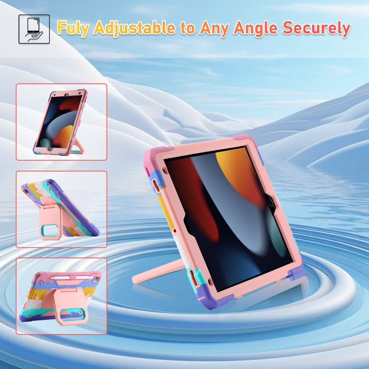 For iPad 10.2 2021 / 2020 / 2019 Legend Grip Holder Silicone Hybrid PC Tablet Case with Strap(Rainbow)