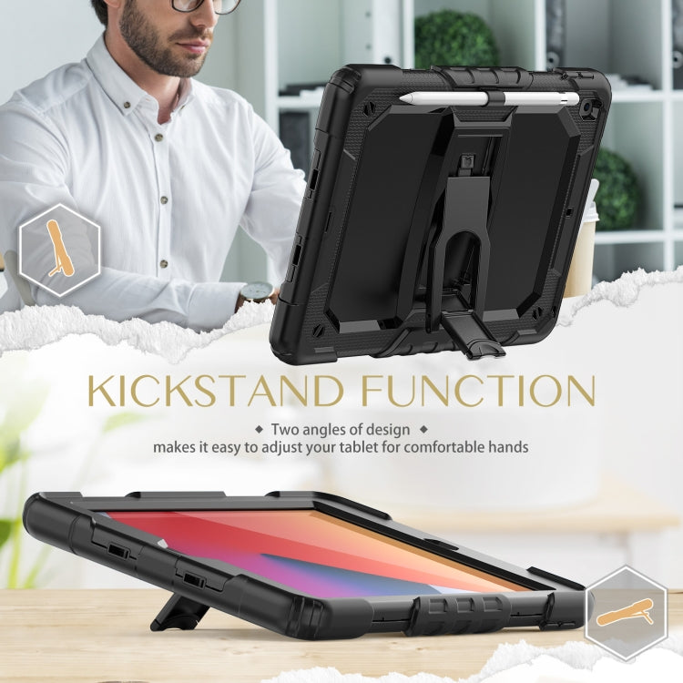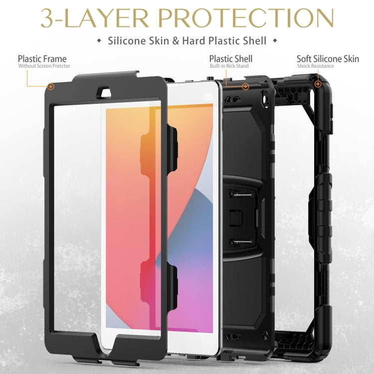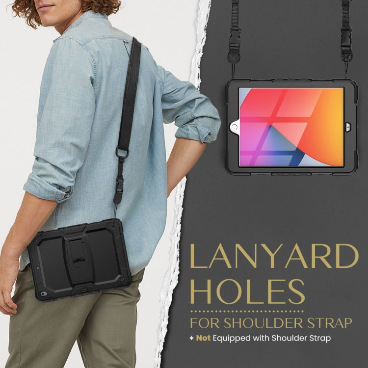 For iPad 10.2 2021 / 2020 / 2019 Shockproof Colorful Silica Gel + PC Protective Case with Holder & Shoulder Strap(Black)
