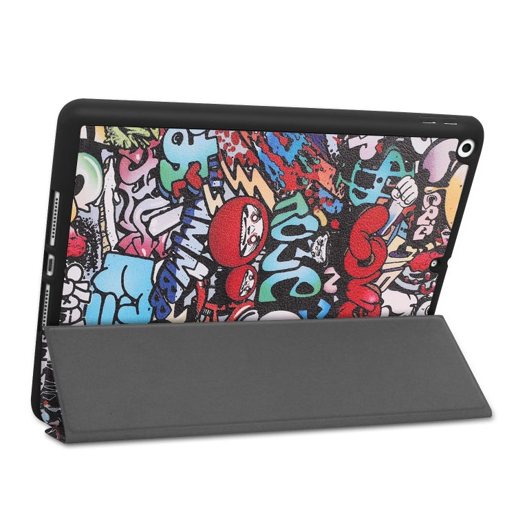 For iPad 10.2 2021 / 2020 / 2019 TPU Colored Drawing Horizontal Flip Leather Case with Three-folding Holder & Sleep / Wake-up Function(Graffiti)