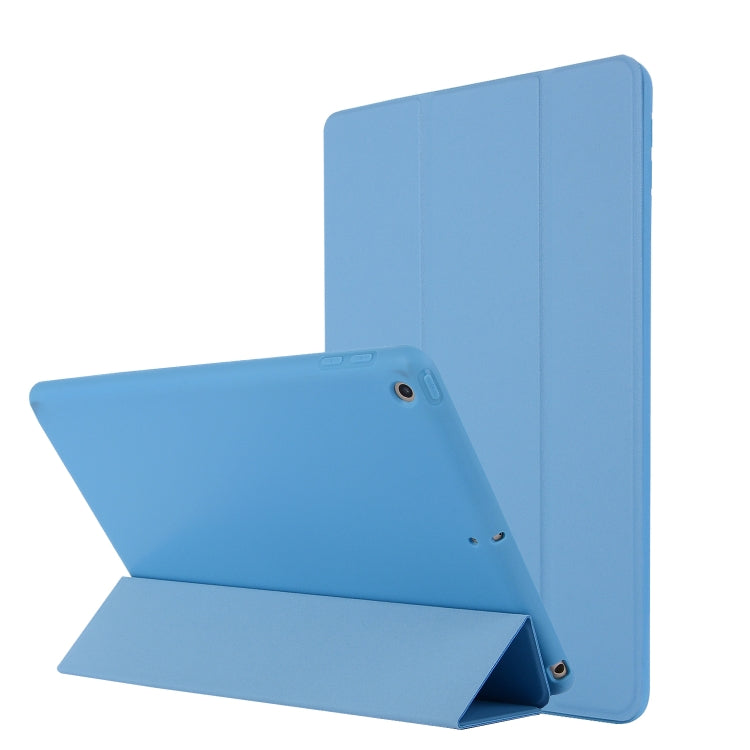 For iPad 10.2 2021 / 2020 / 2019 TPU Horizontal Flip Leather Case, with Three-folding Holder (Sky Blue)