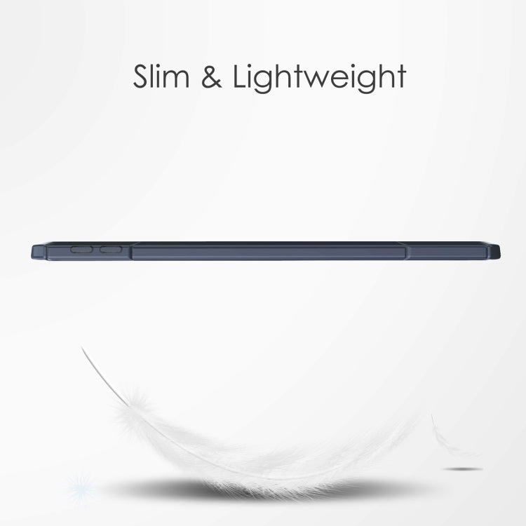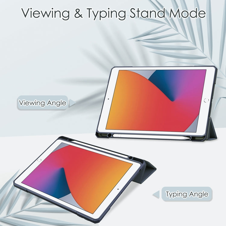For iPad 10.2 2021 / 2020 / 2019 Transparent Acrylic + TPU Back Cover Horizontal Flip Leather Case with 3-folding Holder & Pen Holder & Sleep / Wake-up Function(Blue)