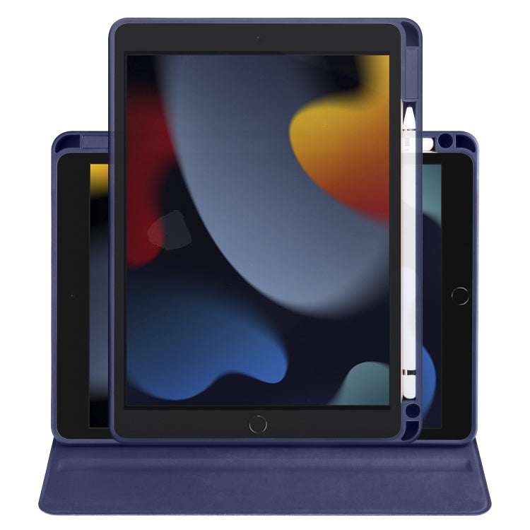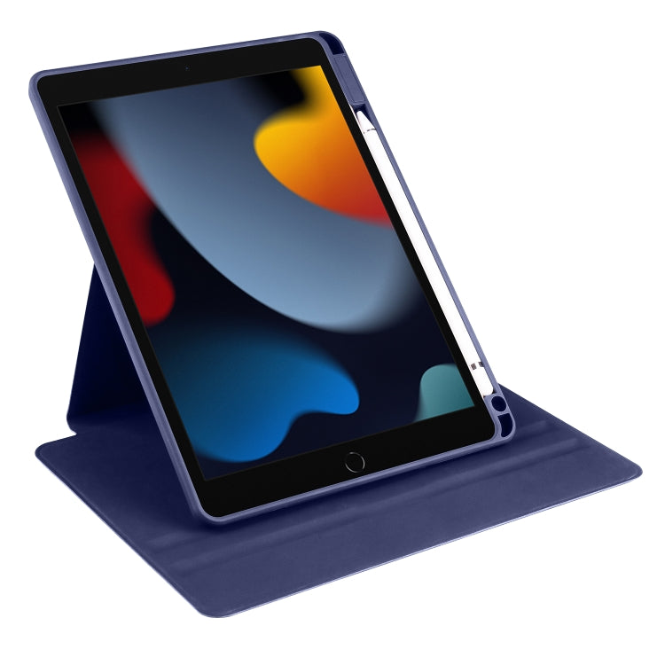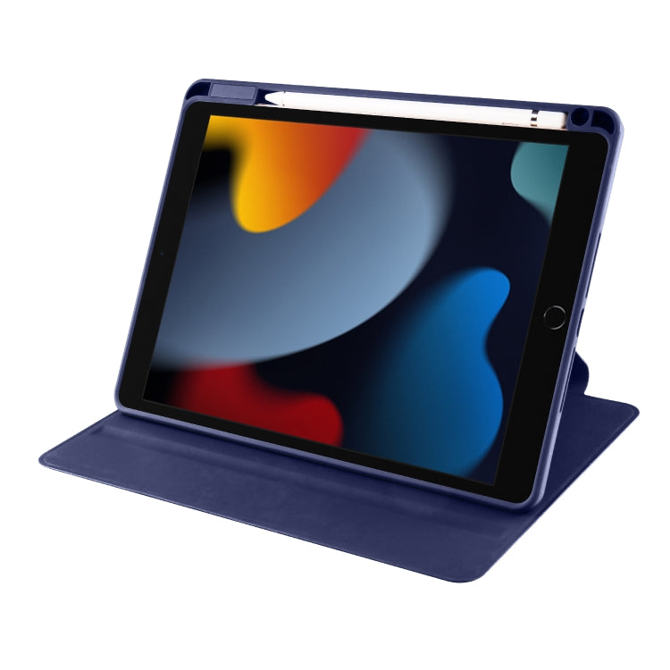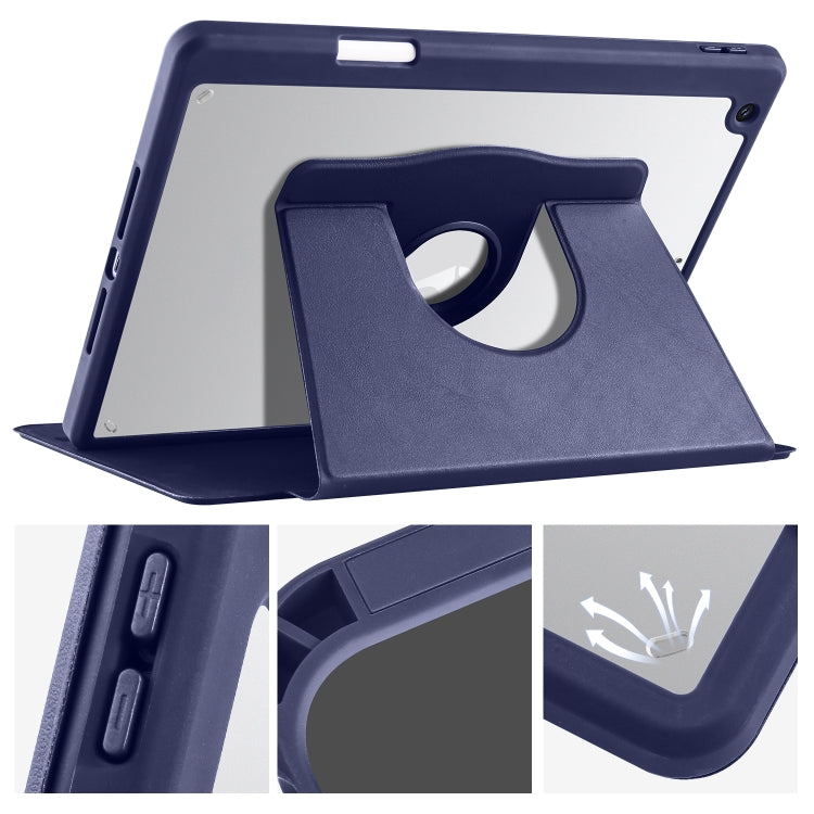 For iPad 10.2 2022 / 2021 / 2020 / 2019 Acrylic 360 Degree Rotation Holder Tablet Leather Case(Dark Blue)