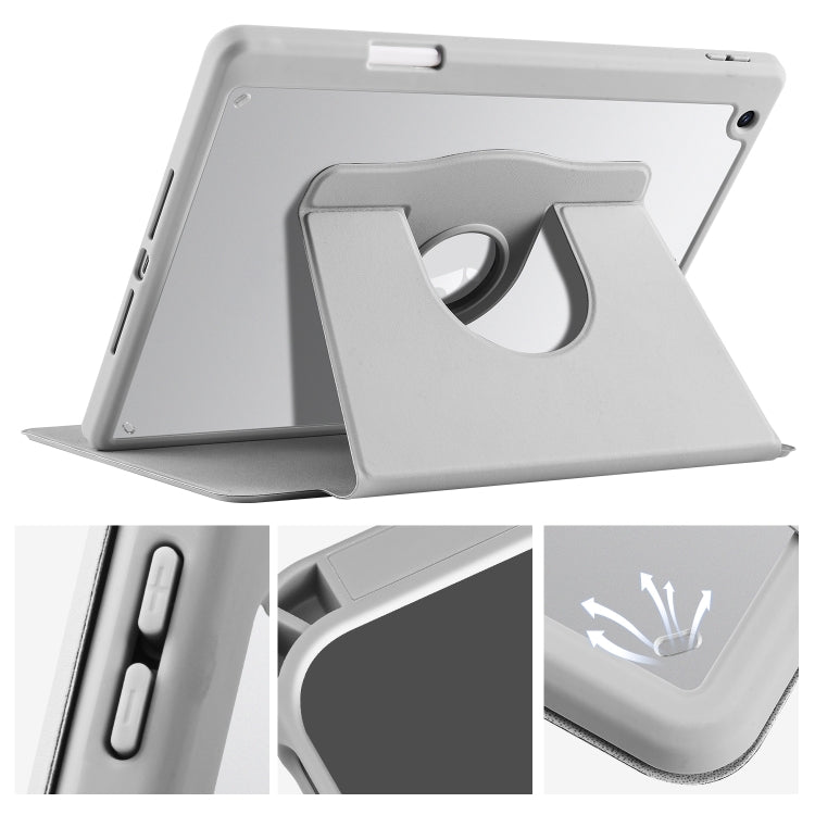 For iPad 10.2 2022 / 2021 / 2020 / 2019 Acrylic 360 Degree Rotation Holder Tablet Leather Case(Fog Grey)