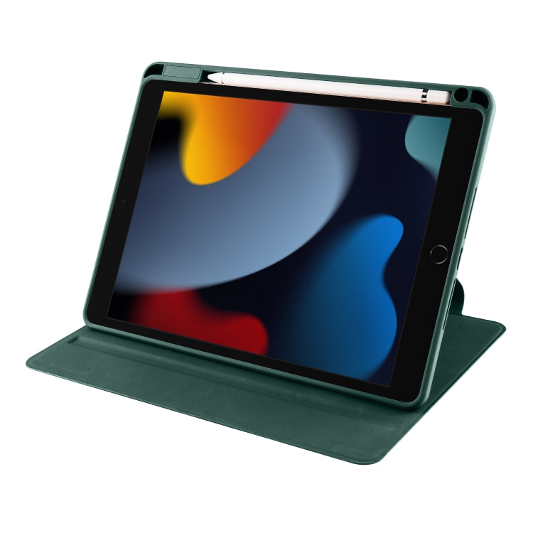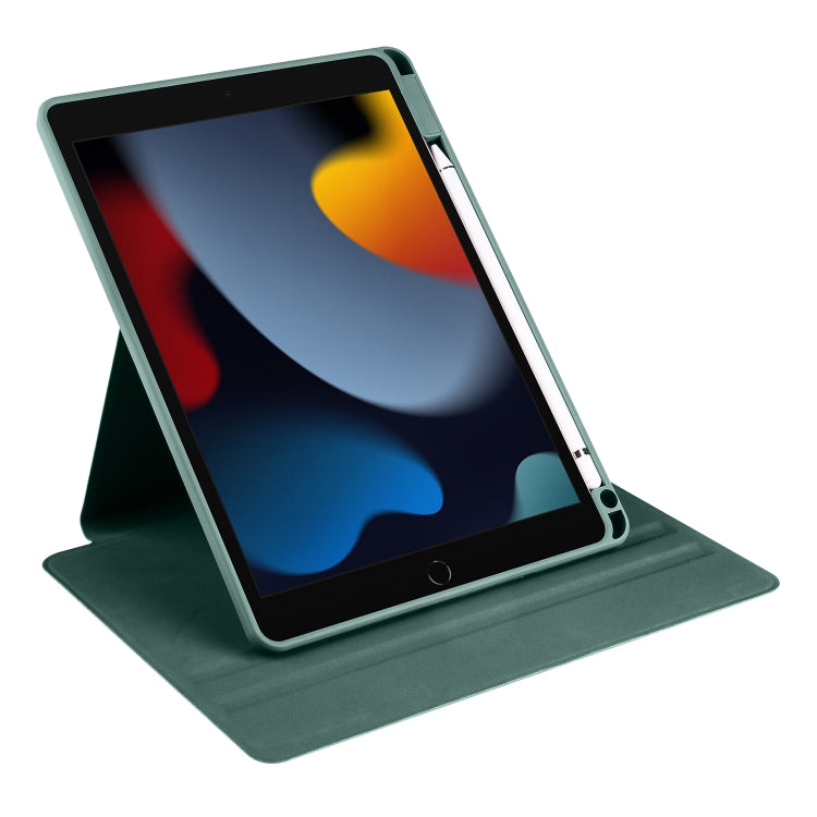 For iPad 10.2 2022 / 2021 / 2020 / 2019 Acrylic 360 Degree Rotation Holder Tablet Leather Case(Pine Green)