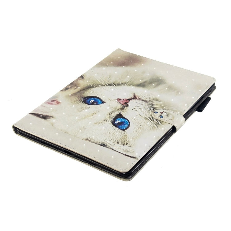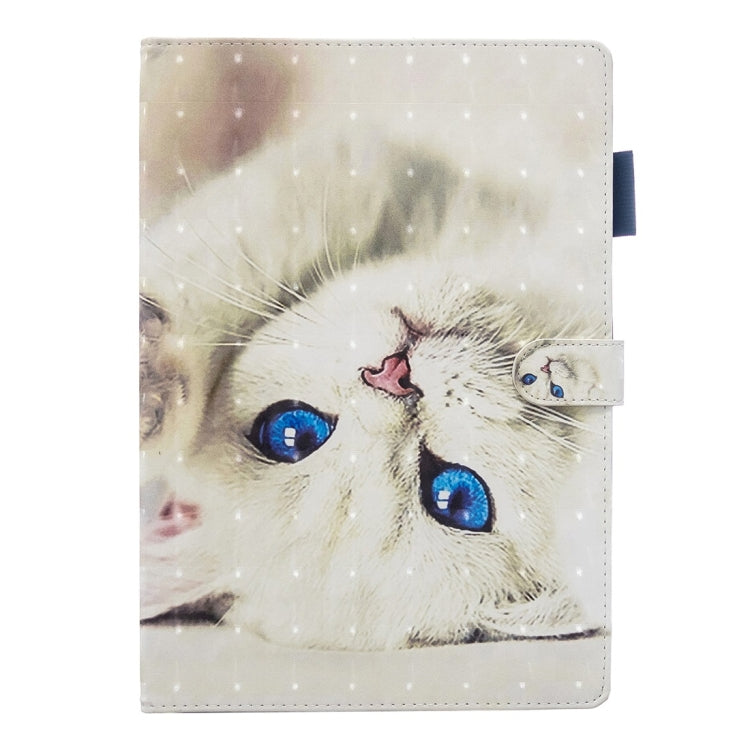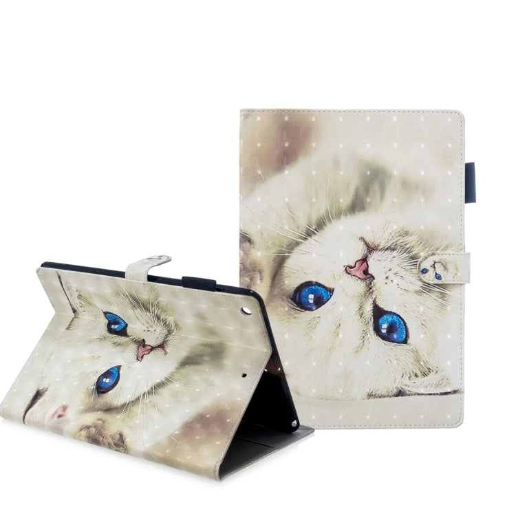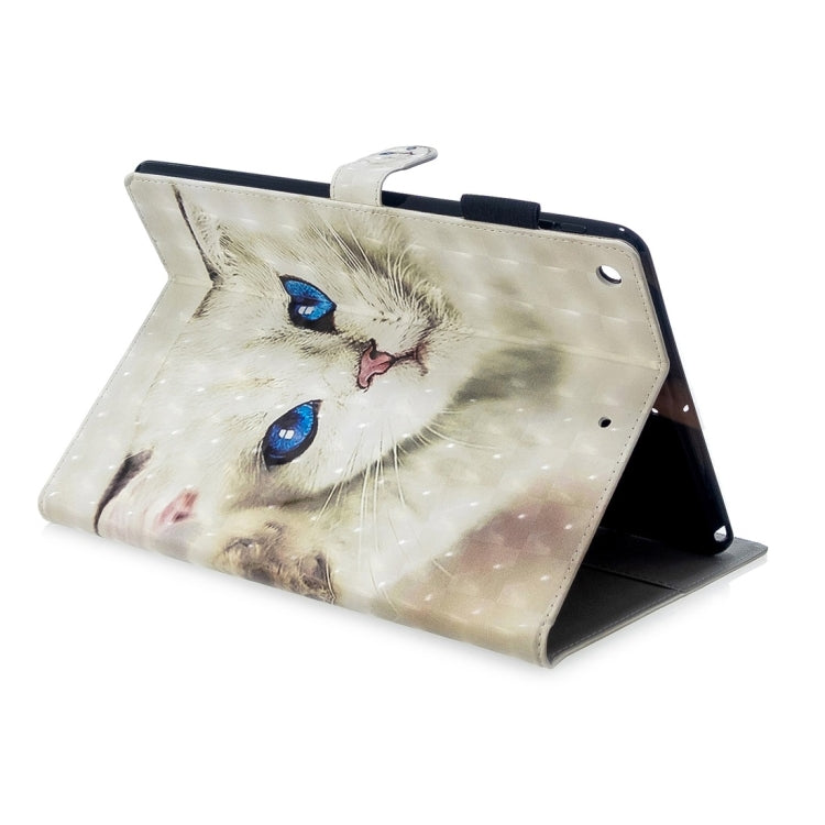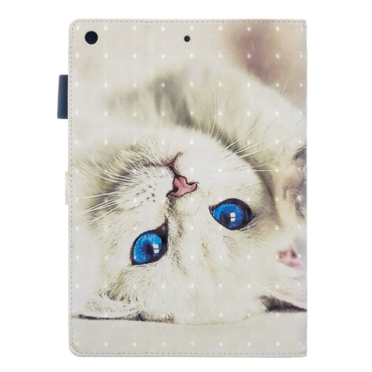For iPad 10.2 3D Embossing Pattern Horizontal Flip Leather Case with Holder & Card Slots & Wallet(White Cat)