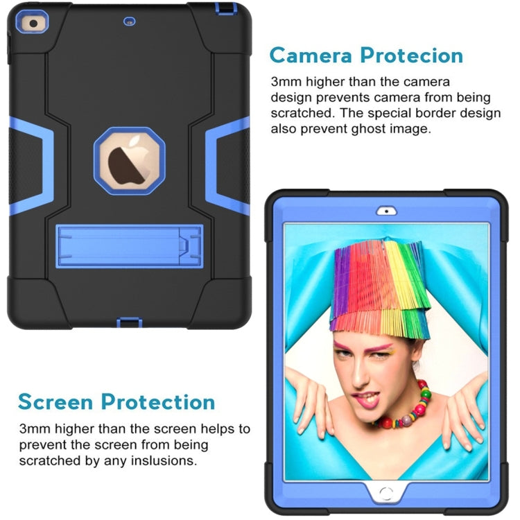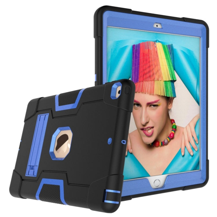 For iPad 10.2 Contrast Color Silicone + PC Combination Case with Holder(Black + Blue)