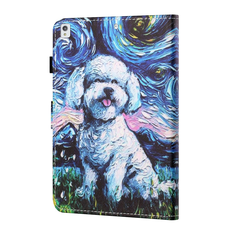 For iPad 10.2 / iPad Air 10.5 2019 Sewing Thread Horizontal Painted Flat Leather Case with Pen Cover & Anti Skid Strip & Card Slot & Holder & Sleep / Wake-up Function(Oil Painting Dog)
