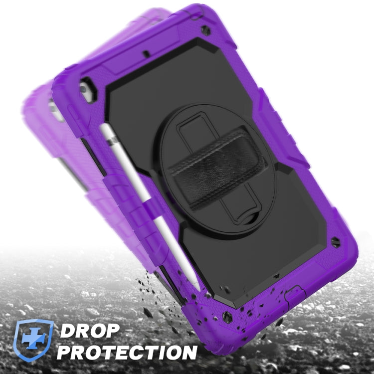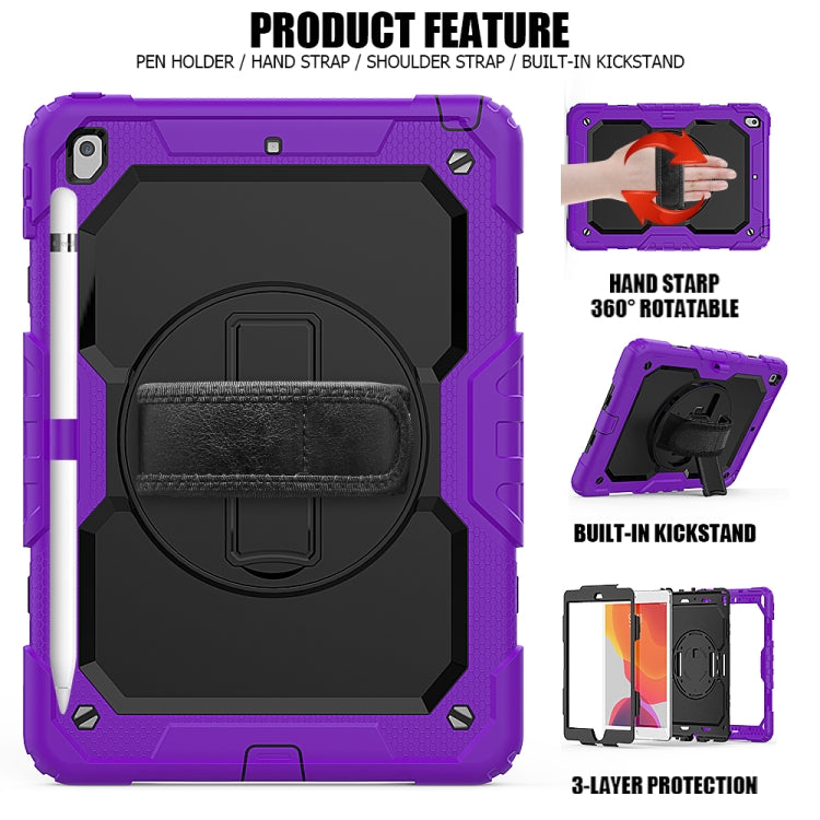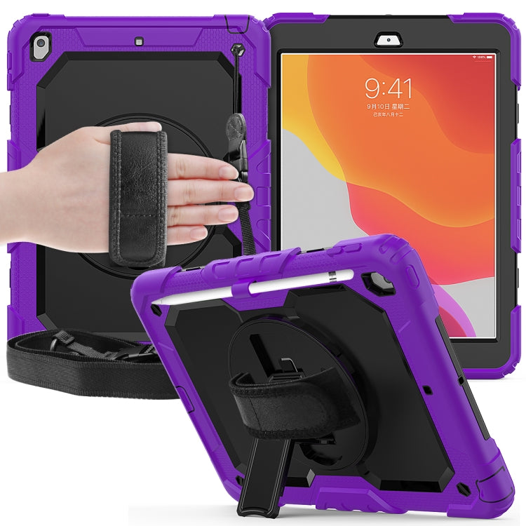 For iPad 10.2 Shockproof Colorful Silica Gel + PC Protective Case with Holder & Shoulder Strap & Hand Strap & Pen Slot(Purple)