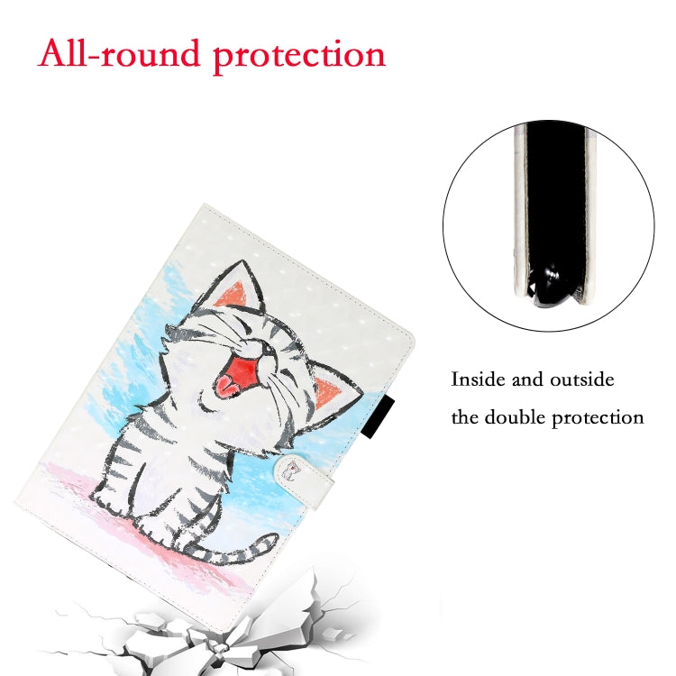For iPad 5 / 6 / 7 / 8 3D Embossing Pattern Horizontal Flip Leather Case with Holder & Card Slots & Wallet(Cat)