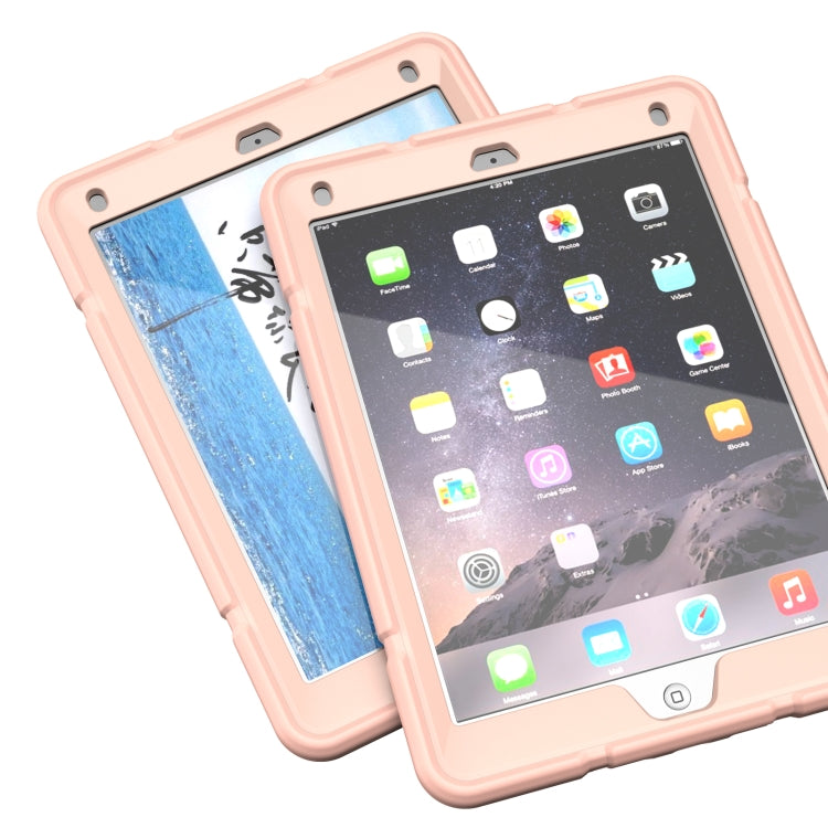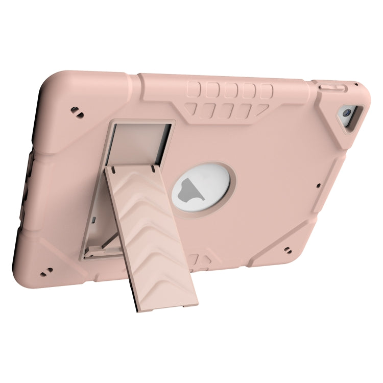 For iPad 9.7 2018 / Air / Air 2 Armor Holder Silicone Hybrid PC Tablet Case(Rose Gold)