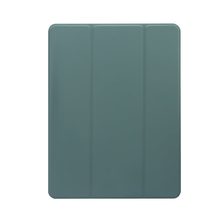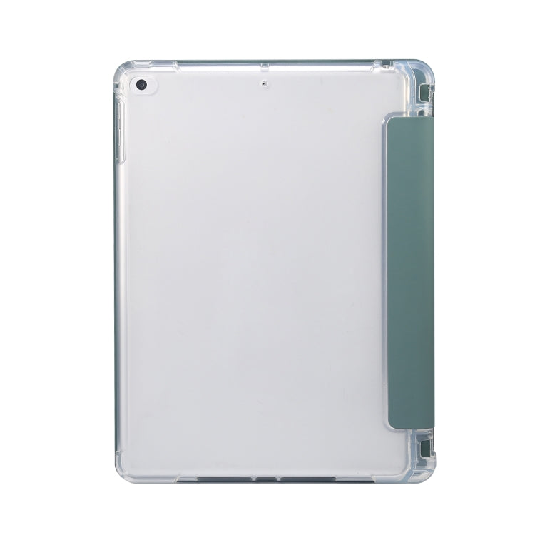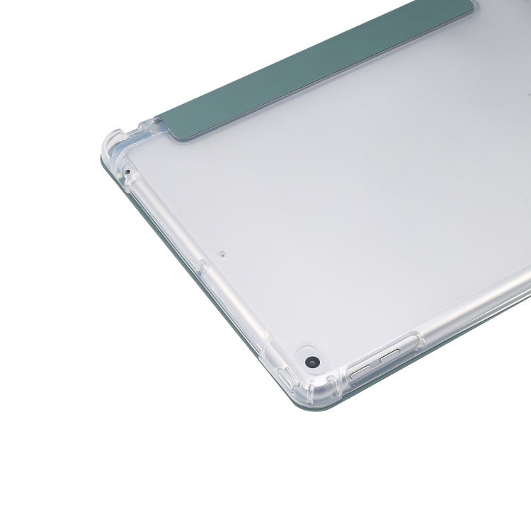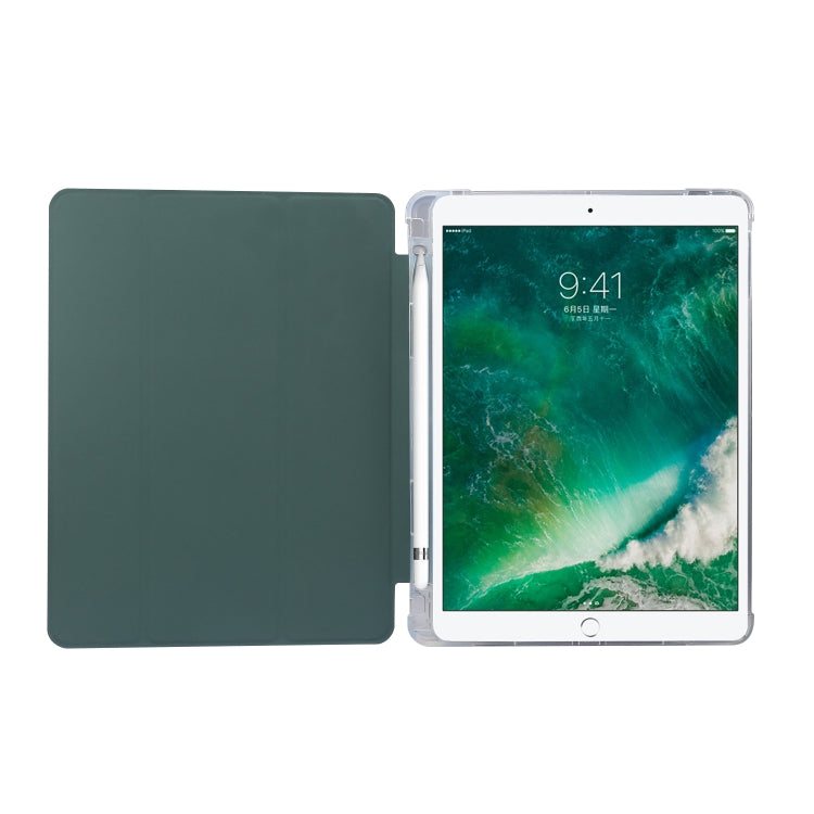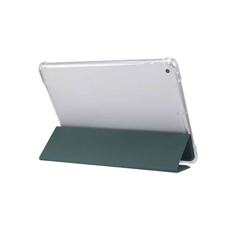 For iPad 9.7(2018)/(2017)/Air 2/Air 3-folding Electric Pressed Skin Texture Horizontal Flip Shockproof Transparent TPU + PU Leather Case with Holder & Pen Slot & Sleep / Wake-up Function(Deep Green)