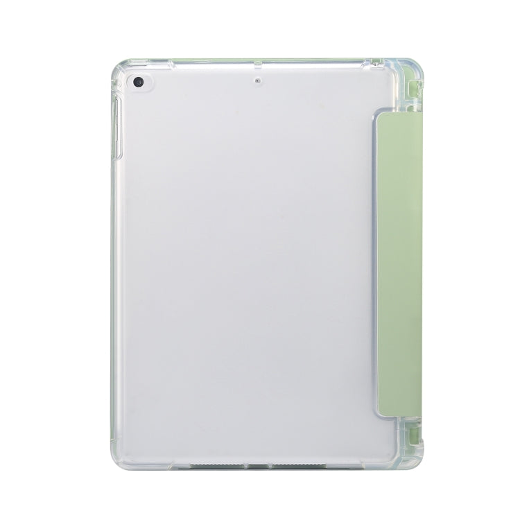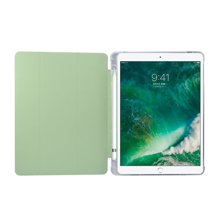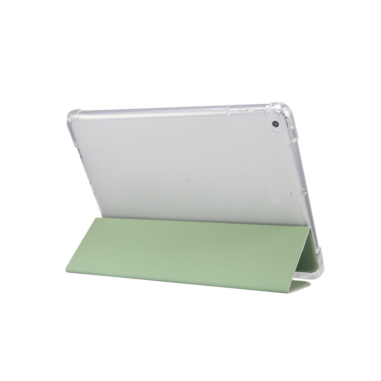 For iPad 9.7(2018)/(2017)/Air 2/Air 3-folding Electric Pressed Skin Texture Horizontal Flip Shockproof Transparent TPU + PU Leather Case with Holder & Pen Slot & Sleep / Wake-up Function(Green)
