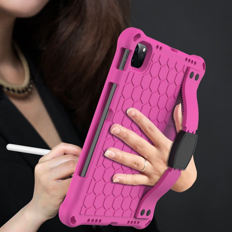 For iPad Air 2022 / 2020 10.9 Honeycomb Design EVA + PC Material Four Corner Anti Falling Flat Protective Shell with Strap(Rose Red+Black)