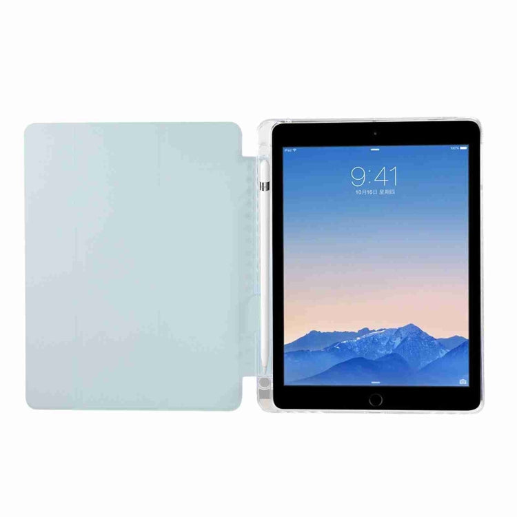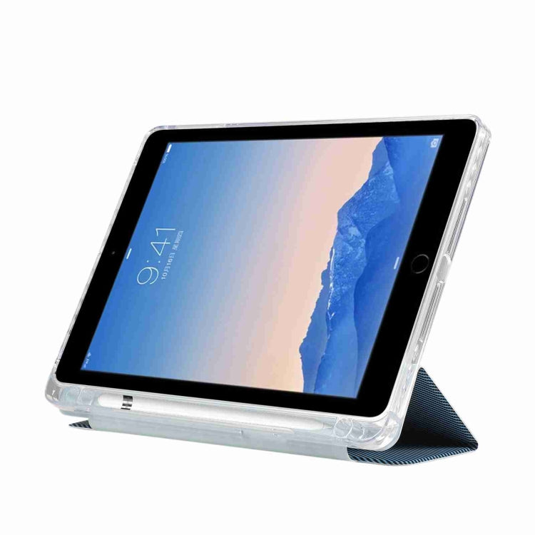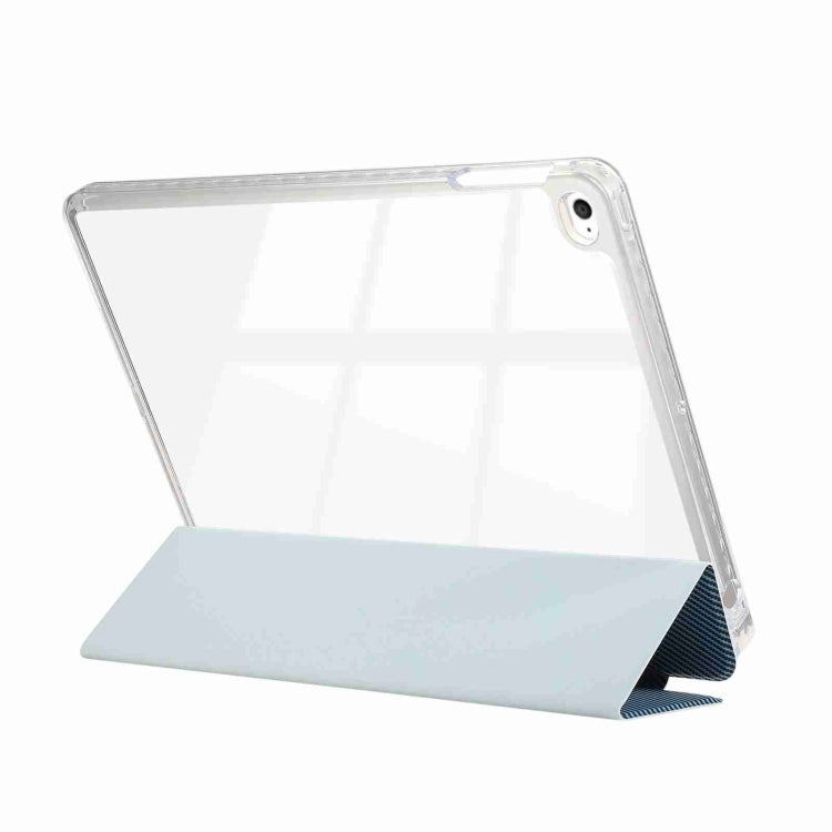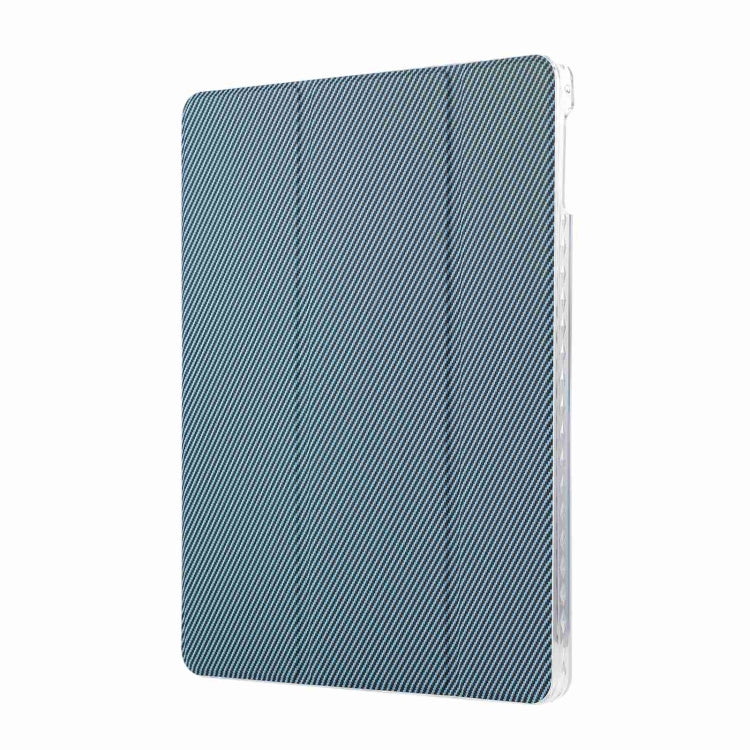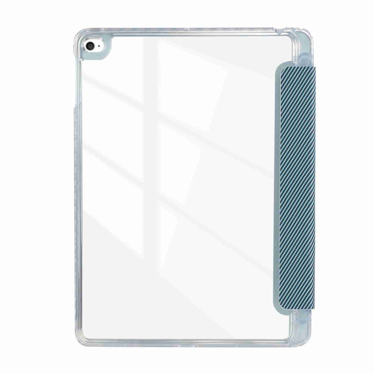 For iPad Air / Air 2 / 9.7 2017 / 2018 Carbon Fiber Clear Acrylic 3-Fold Leather Tablet Case(Blue)