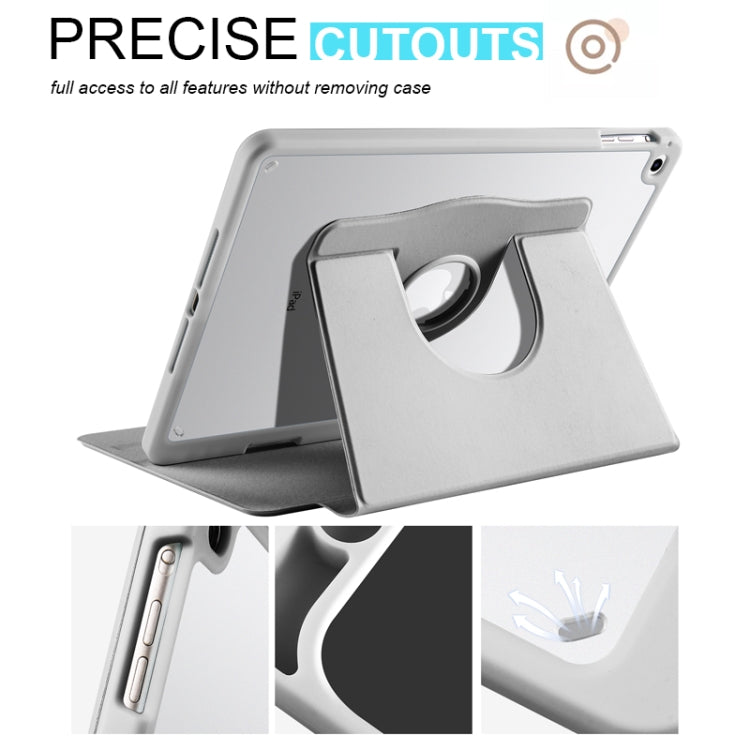 For iPad Air / Air 2 / 9.7 2018 / 2017 Acrylic 360 Degree Rotation Holder Tablet Leather Case(Grey)