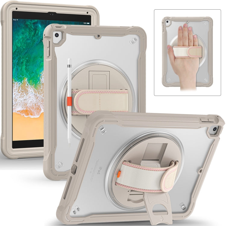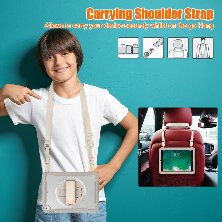 For iPad Air / Air 2 / 9.7 2018 / 2017 Heavy Duty Hybrid Tablet Case with Hand Grip & Strap(Khaki)