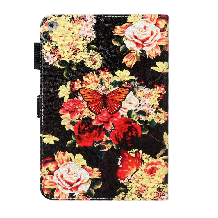 For iPad Air Cross Texture Painted Horizontal Leather Case with Sleep / Wake-up Function & Card Slot & Holder & Wallet(Black Peony Flower)