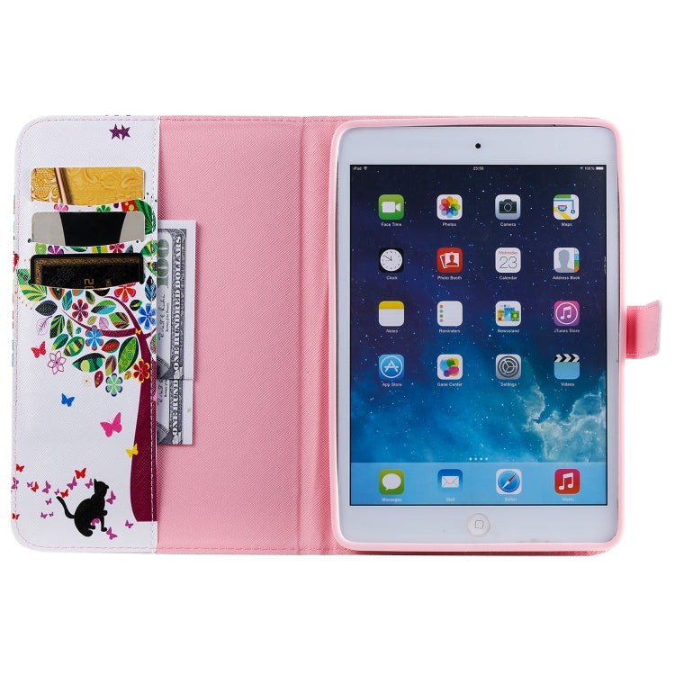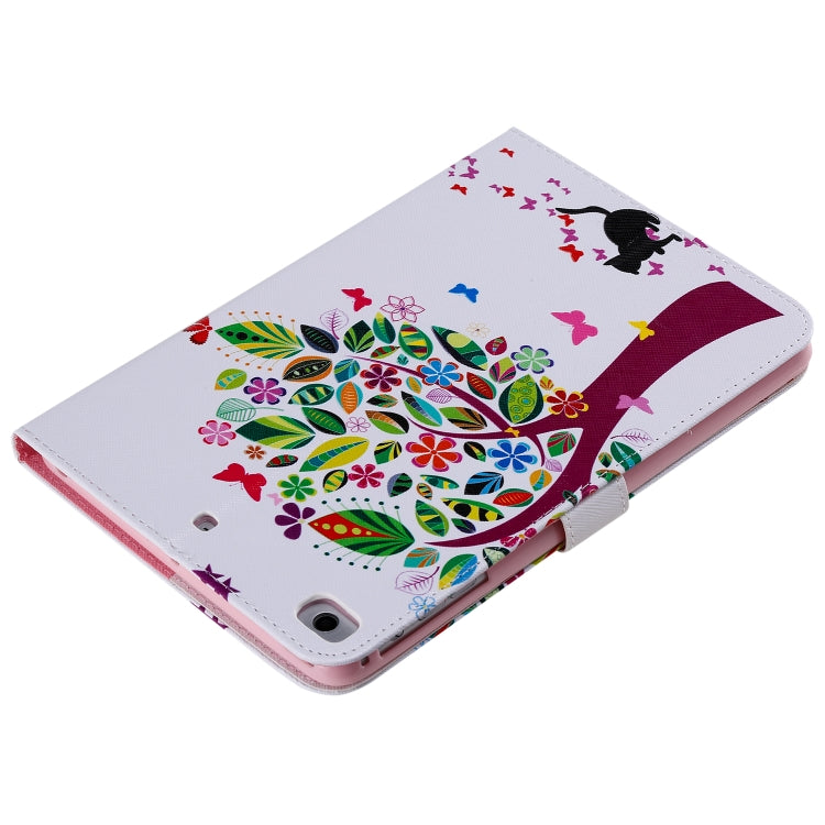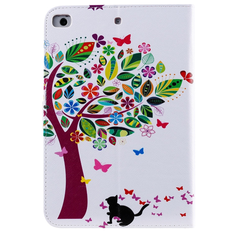 For iPad Mini 2019 & 4 & 3 & 2 & 1 3D Colored Drawing Horizontal Flip Leather Case with Holder & Card Slots & Wallet & Sleep / Wake-up Function(Cat and Tree)