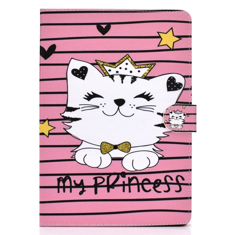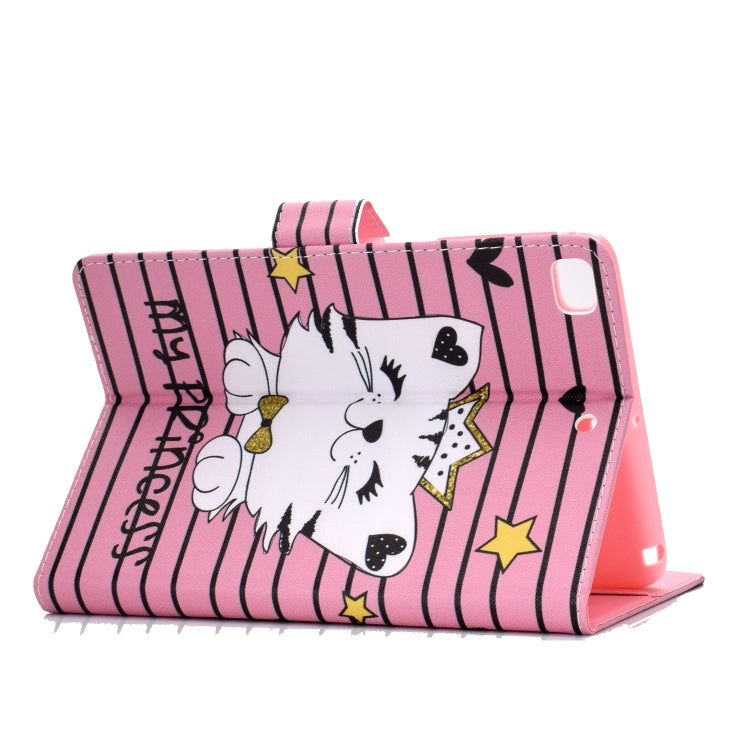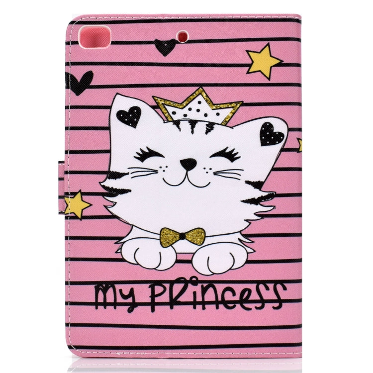 For iPad Mini 2019 & 4 & 3 & 2 & 1 Colored Drawing Pattern Horizontal Flip PU Leather Case with Holder & Card Slot & Sleep / Wake-up Function(Crown Cat)