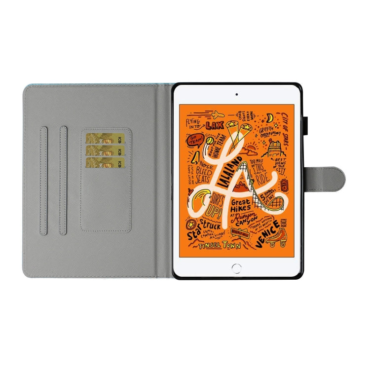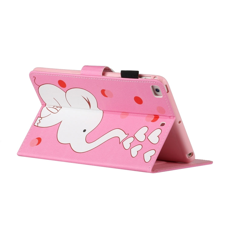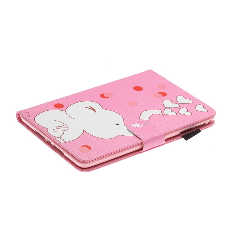 For iPad Mini 2019 & 4 & 3 & 2 & 1 Colored Drawing Pattern Horizontal Flip PU Leather Case with Holder & Card Slot & Sleep / Wake-up Function(Loving Elephant)