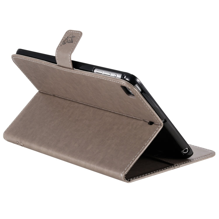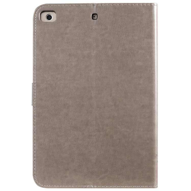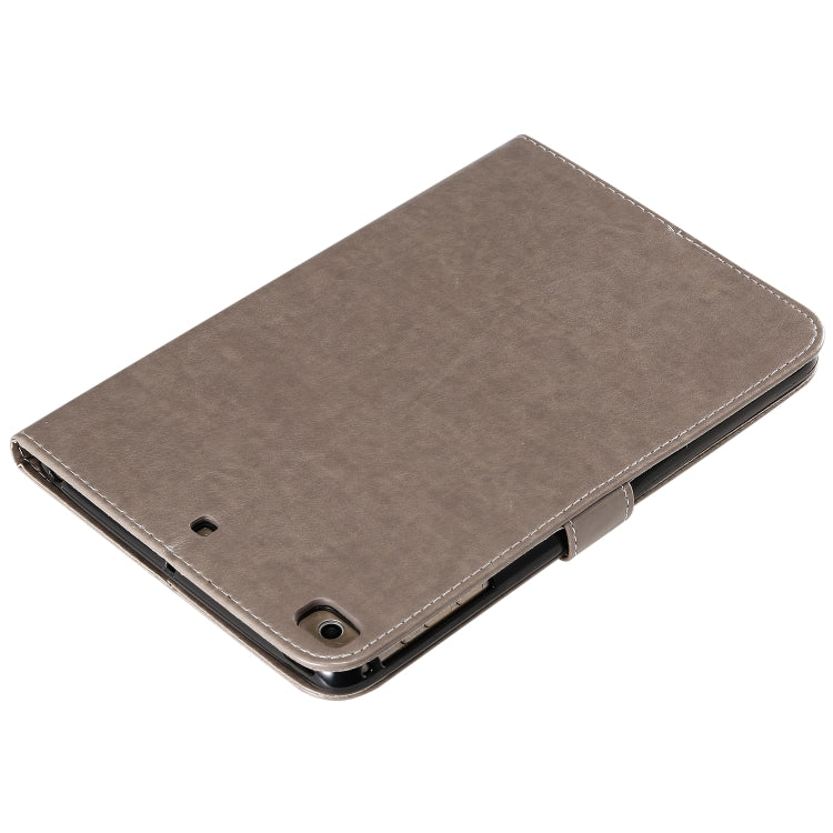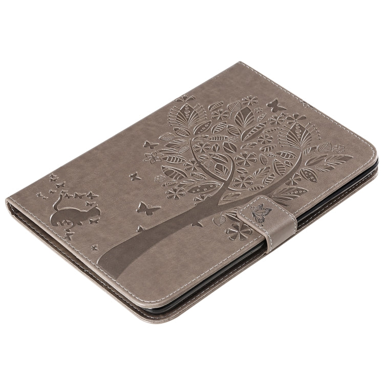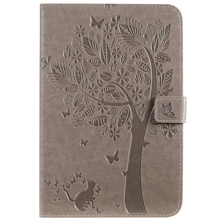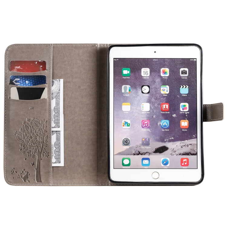 For iPad Mini 2019 & 4 & 3 & 2 & 1 Pressed Printing Cat and Tree Pattern Horizontal Flip Leather Case with Holder & Card Slots & Wallet(Grey)