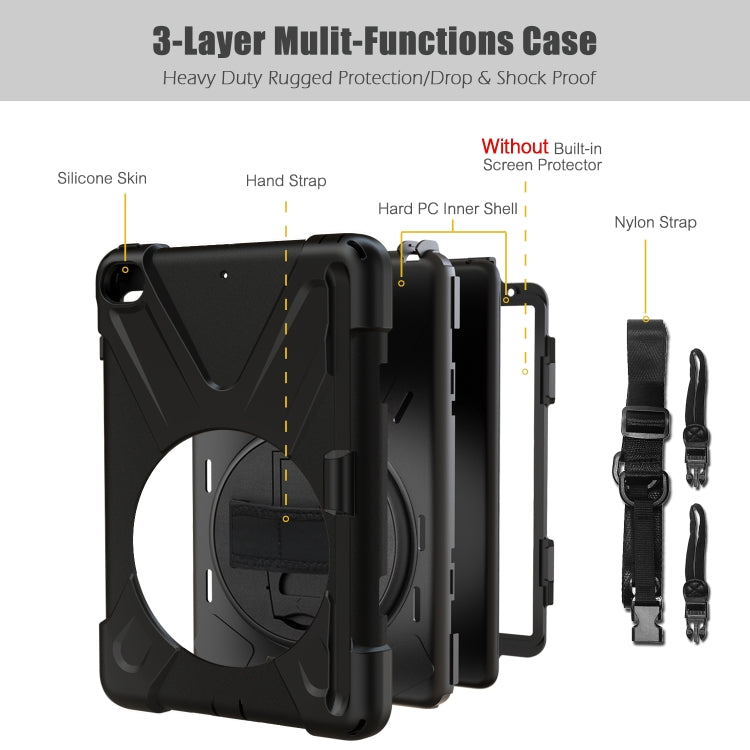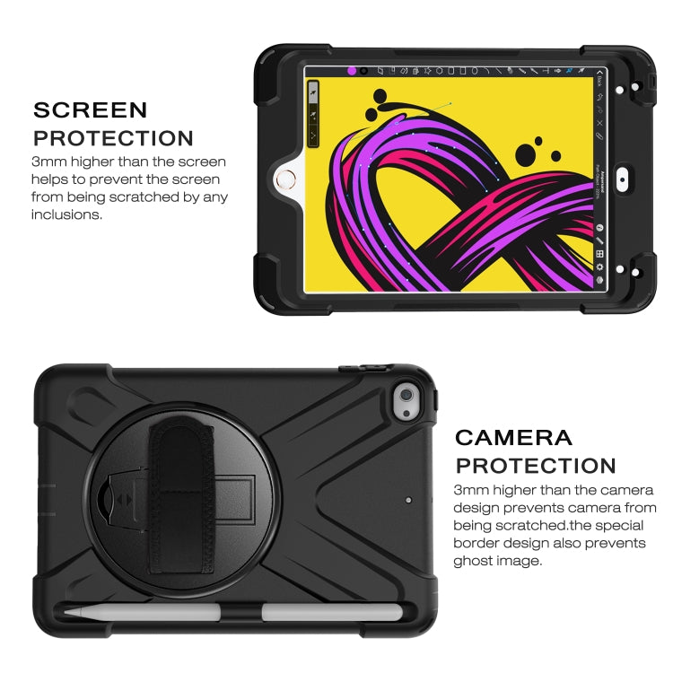 For iPad Mini 5 360 Degree Rotation Silicone Protective Cover with Holder & Hand Strap & Long Strap & Pencil Slot(Black)