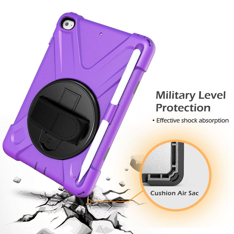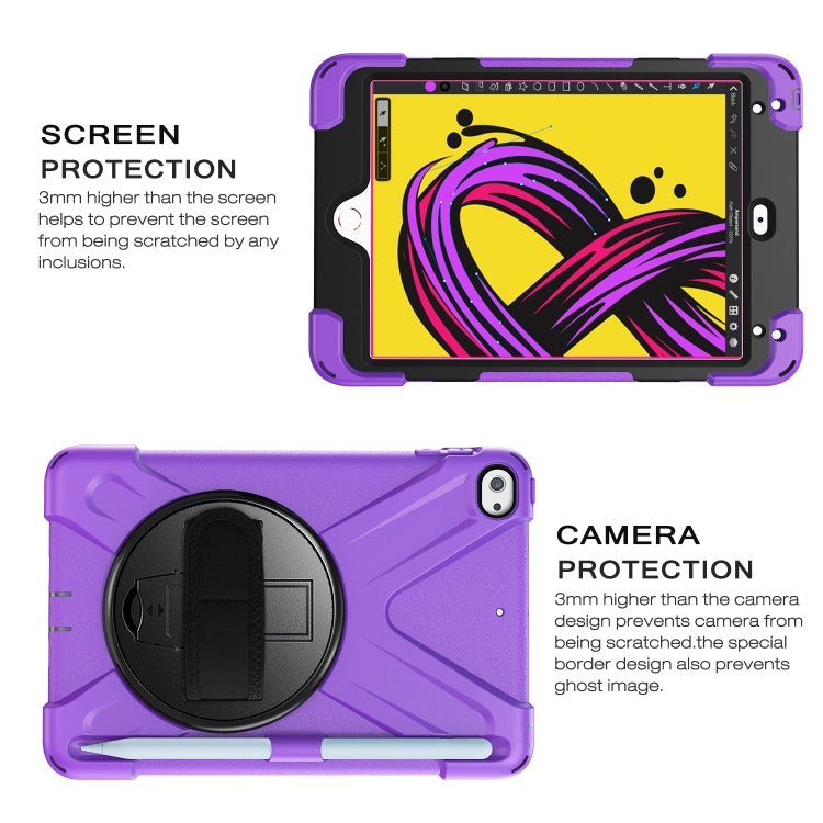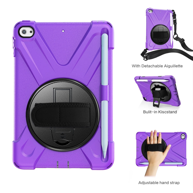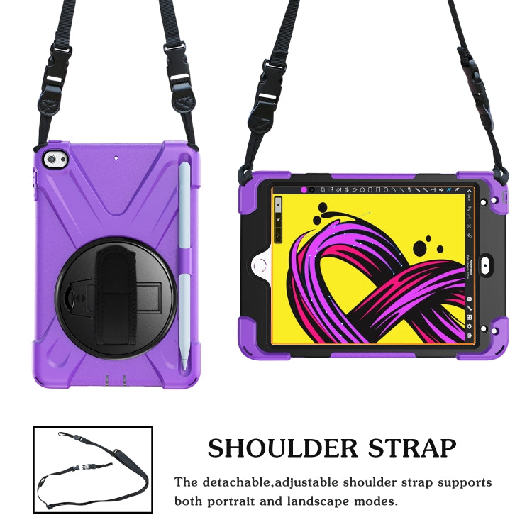 For iPad Mini 5 360 Degree Rotation Silicone Protective Cover with Holder & Hand Strap & Long Strap & Pencil Slot(Purple)