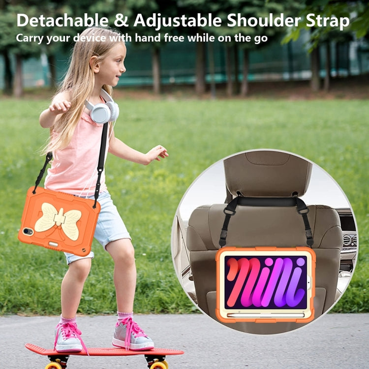 For iPad mini 6 / mini 2024 Beige PC + Silicone Anti-drop Protective Tablet Case with Butterfly Shape Holder & Pen Slot(Beige + Kumquat)
