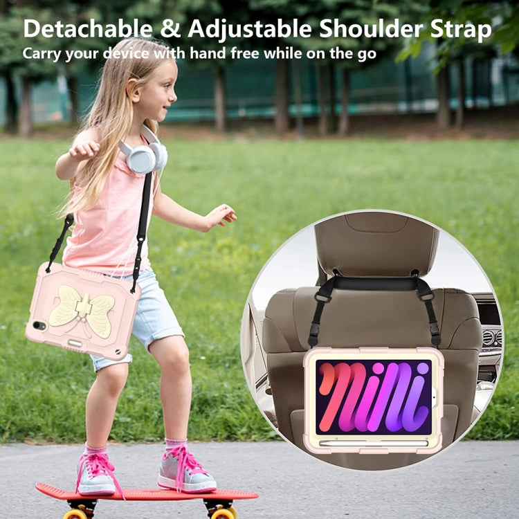 For iPad mini 6 / mini 2024 Beige PC + Silicone Anti-drop Protective Tablet Case with Butterfly Shape Holder & Pen Slot(Beige + Rose Pink)
