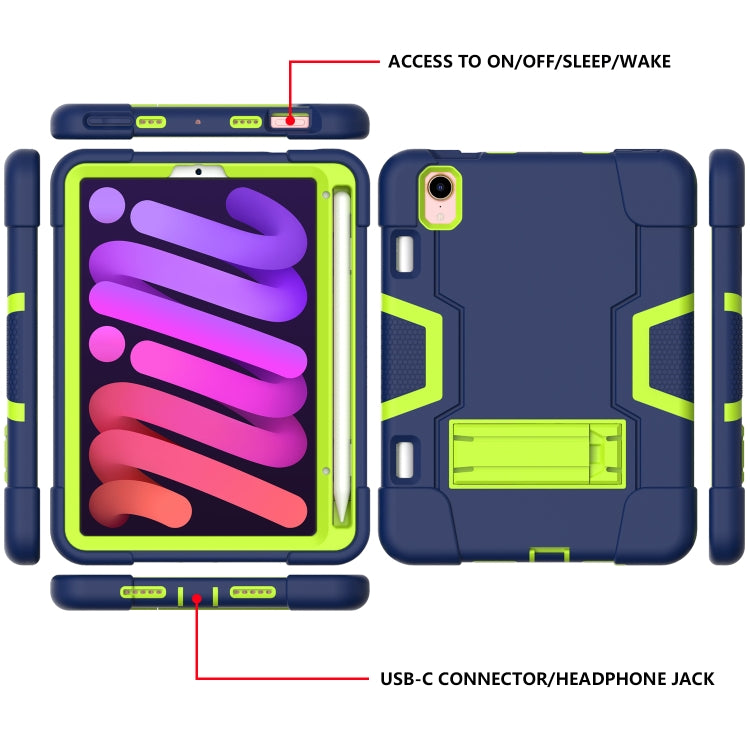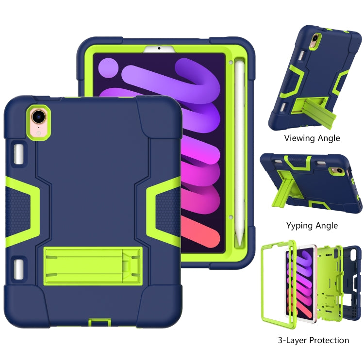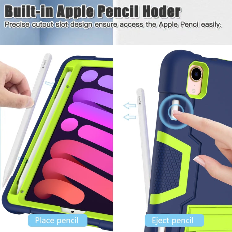 For iPad mini 2024 / mini 6 Contrast Color Robot Shockproof Silicone + PC Protective Tablet Case with Holder & Pen Slot(Navy Blue Mint Green)