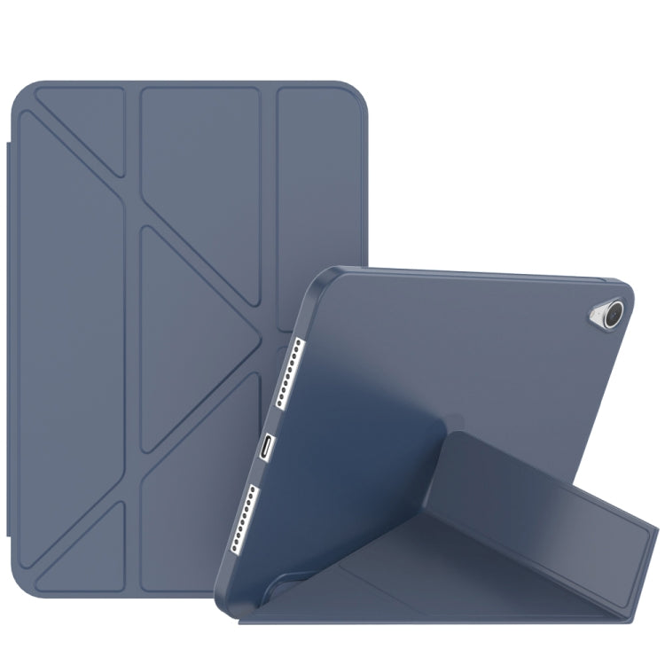 For iPad mini 2024 / mini 6 Double-sided Matte Deformation TPU Tablet Leather Case with Holder & Sleep / Wake-up Function(Dark Blue)