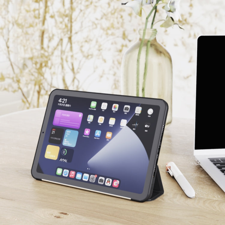 For iPad mini 2024 / mini 6 Double-sided Matte TPU Tablet Leather Case with 3-folding Holder & Sleep / Wake-up Function(Black)