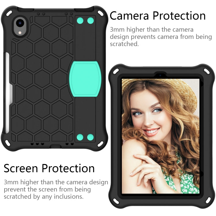 For iPad mini 6 / mini 2024 Honeycomb EVA Hybrid PC Tablet Case with Strap(Black+Aqua)