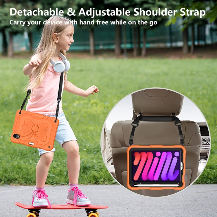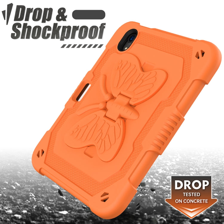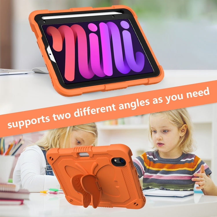 For iPad mini 6 / mini 2024 Pure Color PC + Silicone Anti-drop Protective Tablet Case with Butterfly Shape Holder & Pen Slot(Kumquat)