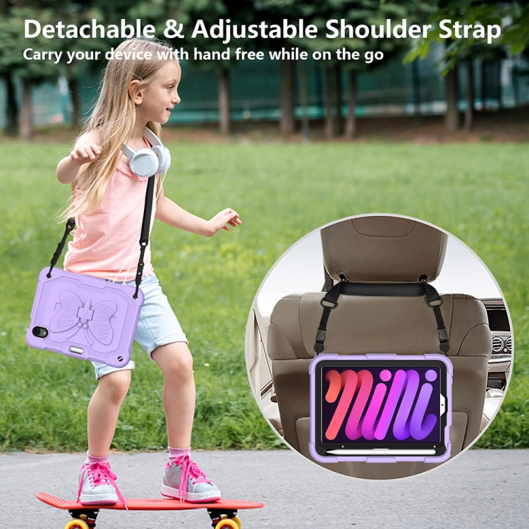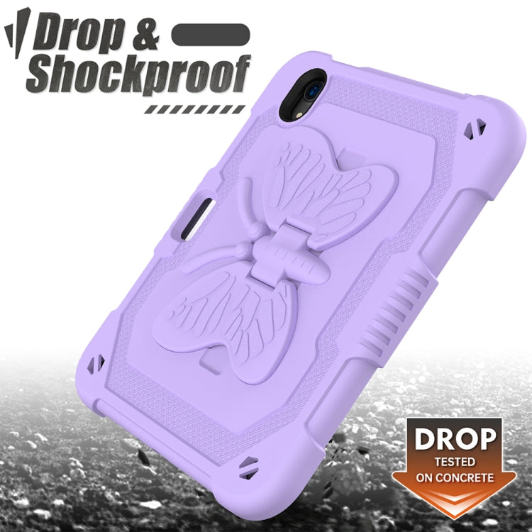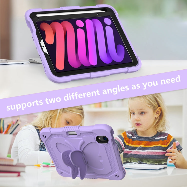 For iPad mini 6 / mini 2024 Pure Color PC + Silicone Anti-drop Protective Tablet Case with Butterfly Shape Holder & Pen Slot(Light Purple)