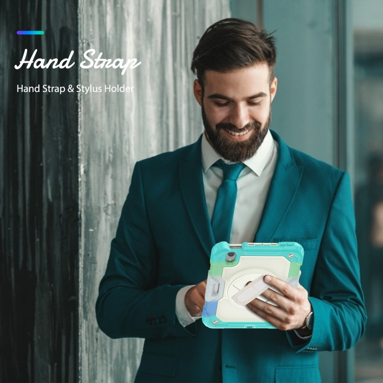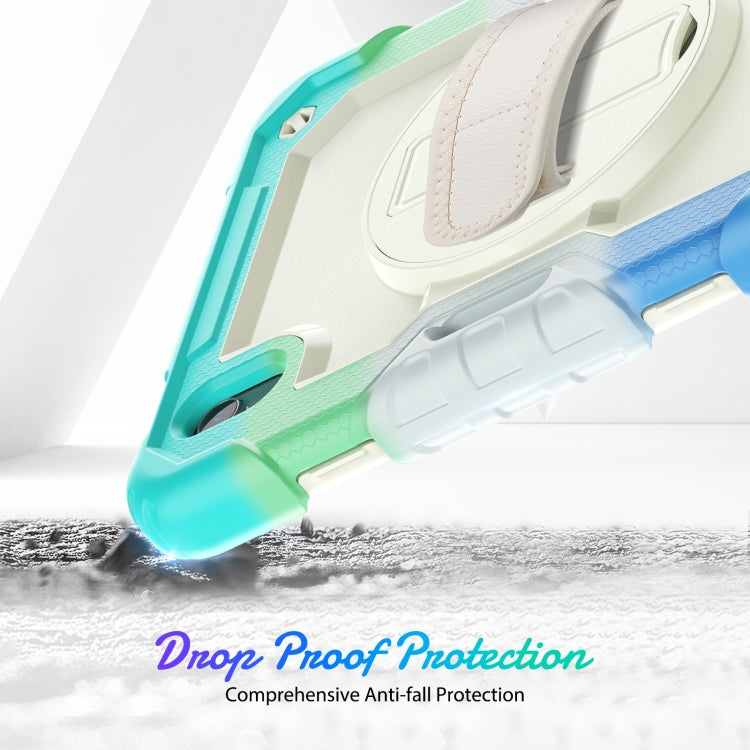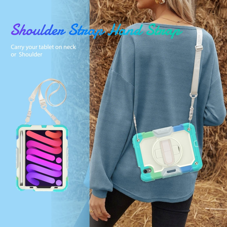 For iPad mini 2024 / mini 6 Shockproof Silicone + PC Protective Tablet Case with Holder & Shoulder Strap & Pen Slot(Beige + Camouflage Blue)