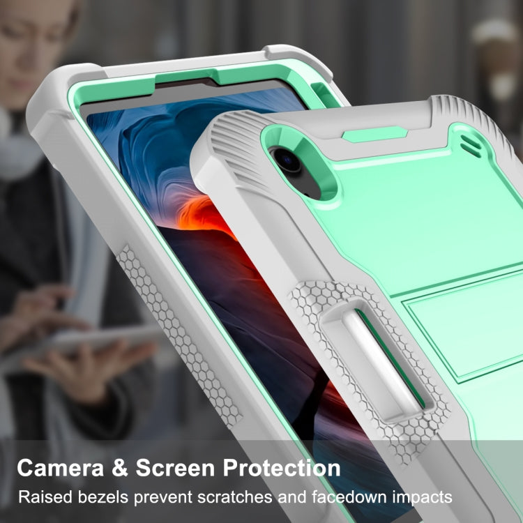 For iPad mini 2024 / mini 6 Silicone + PC Shockproof Protective Tablet Case with Holder(Gray + Green)
