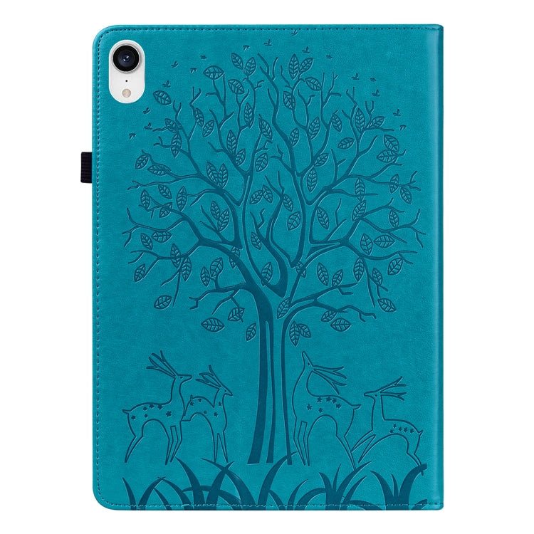For iPad mini 6 / mini 2024 Tree & Deer Pattern Pressed Printing Leather Tablet Case(Blue)