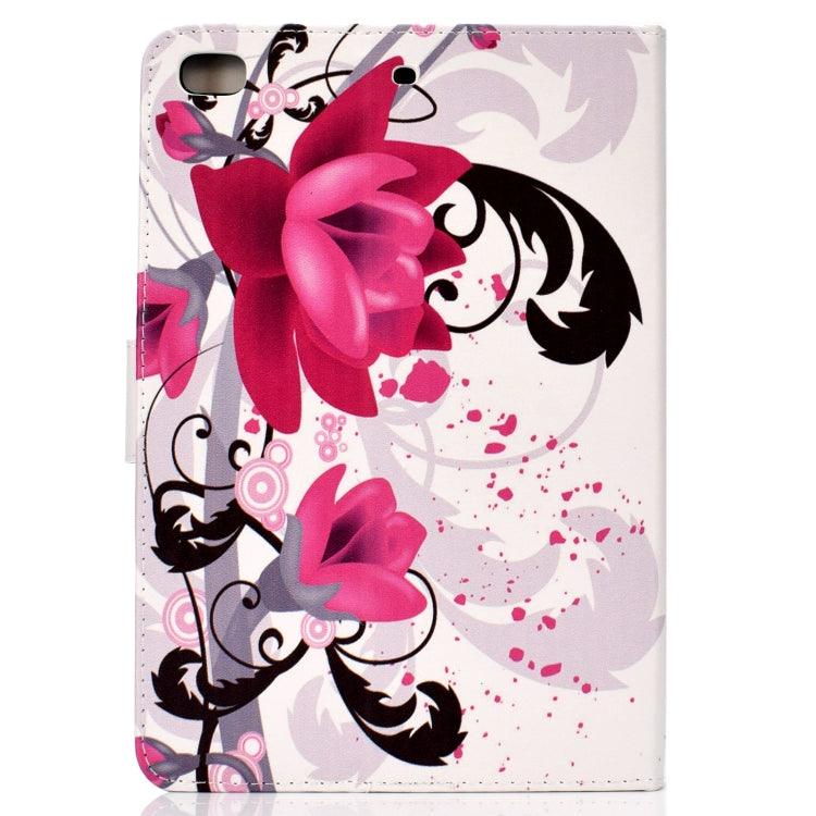 For iPad mini1 / 2 / 3 / 4 Colored Drawing Pattern Horizontal Flip PU Leather Case with Holder & Card Slot & Sleep / Wake-up Function(Flowers)