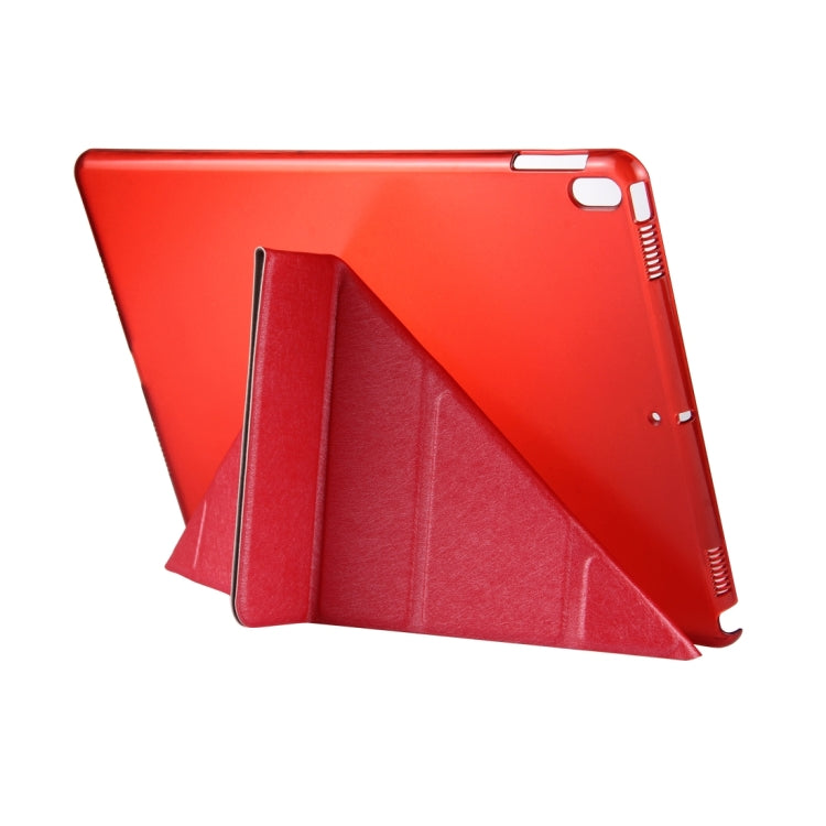 For iPad Pro 10.5 inch Silk Texture Horizontal Deformation Flip Leather Case with 4-folding Holder & Sleep / Wake-up(Red)